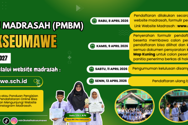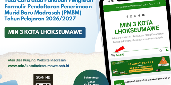 Tata Cara atau Panduan Pengisian Formulir Pendaftaran Penerimaan Murid Baru Madrasah (PMBM) MIN 3 Kota Lhokseumawe Secara Online Tahun Pelajaran 2026/2027
