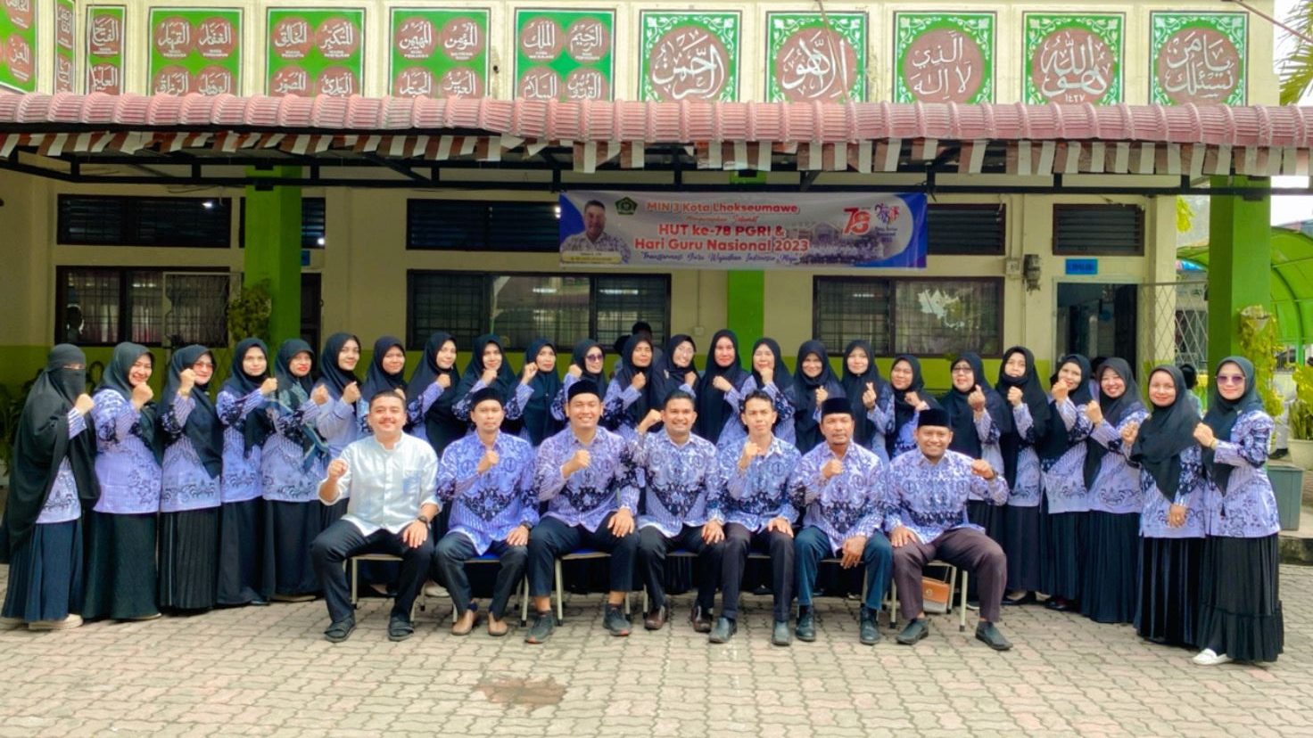 Lhokseumawe- Dalam rangka memperingati Hari Guru Nasional sekaligus Hari Ulang Tahun (HUT) Persatuan Guru Republik Indonesia (PGRI) ke-78 Madrasah Ibtidayah Negeri (MIN) Kota Lhokseumawe melangsungkan upacara bendera di lapangan MIN 3 Kota Lhokseumawe, Senin (27/11/2023).