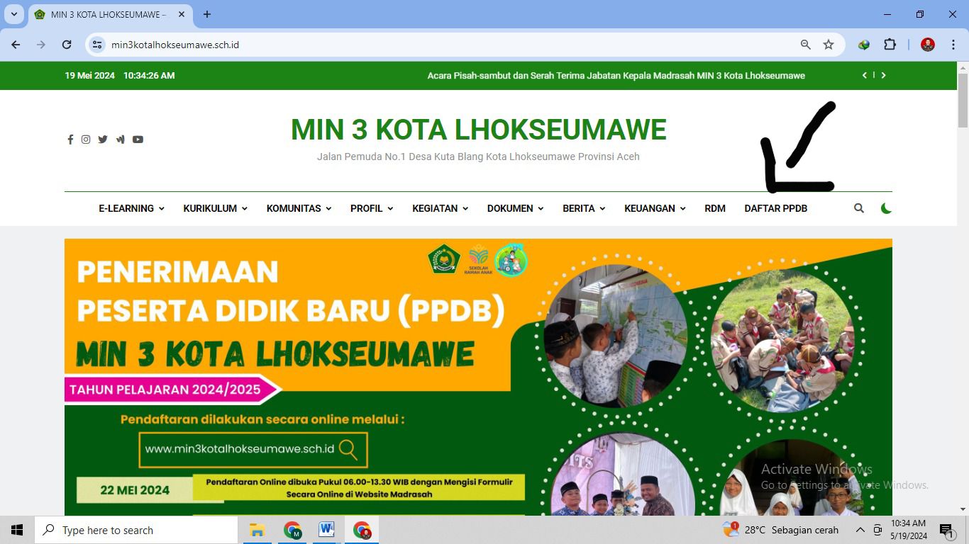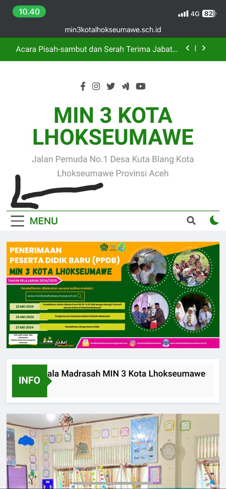 - Langkah pertama, membuka website min3kotalhokseumawe.sch.id