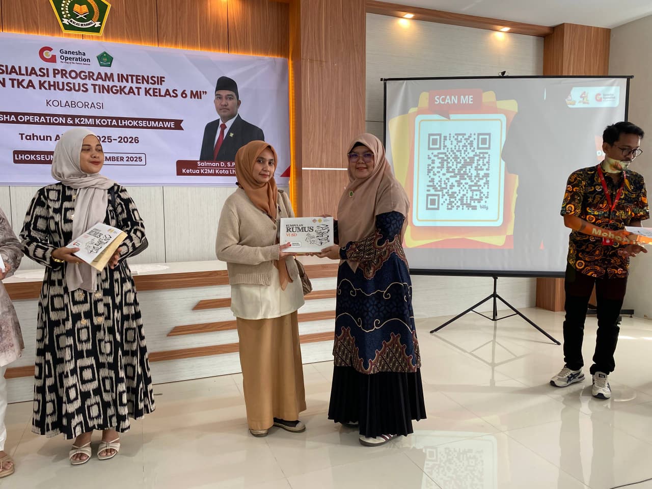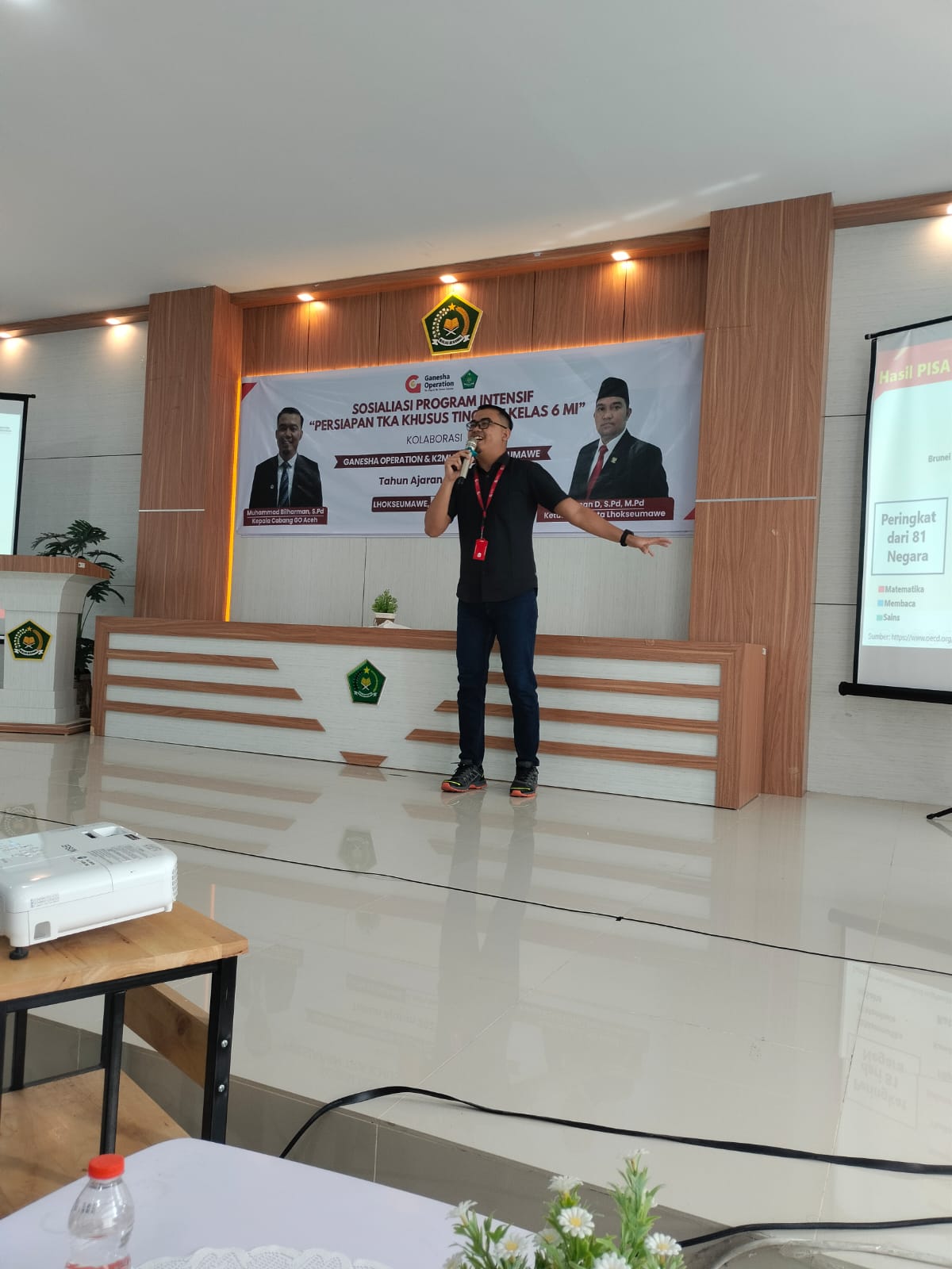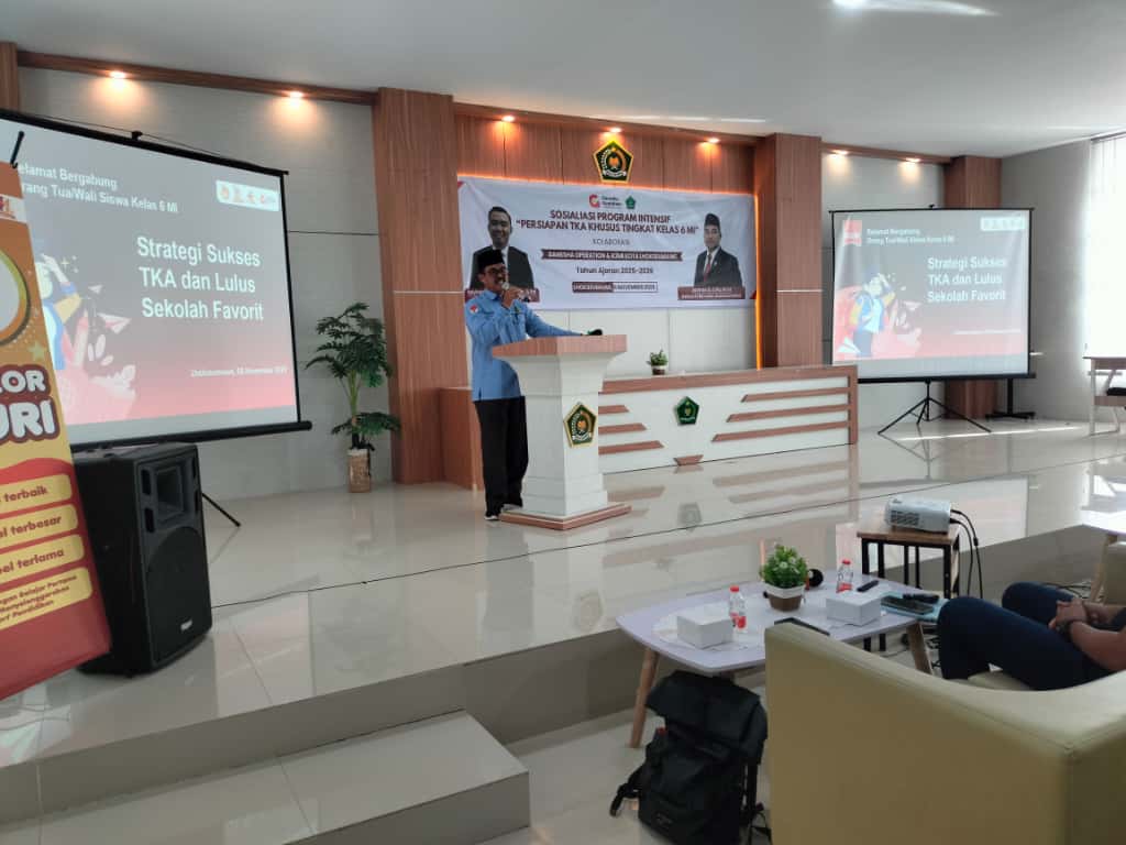 Lhokseumawe – K2MI Kota Lhokseumawe berkolaborasi dengan Genesha Operation menyelenggarakan sosialisasi program insentif persiapan TKA (Tes Kemampuan Akademik) khusus kelas 6 Madrasah Ibtidaiyah diikuti seluruh wali murid kelas 6 MI se Kota Lhokseumawe termasuk MIN 3 Kota Lhokseumawe yang dilaksanakan di gedung PLHUT Kota Lhokseumawe pada hari Kamis, (06/11/2025).