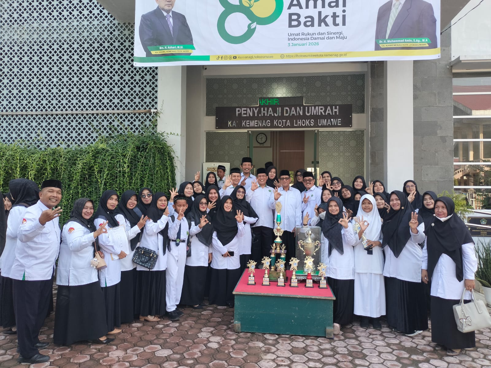 Lhokseumawe – Pada upacara peringatan Hari Amal Bhakti (HAB) Kementerian Agama (Kemenag) Ke 80 Kota Lhokseumawe Madrasah Ibtidaiyah Negeri (MIN) 3 Kota Lhokseumawe menerima 6 buah piala dan berhasil menduduki juara umum pada lomba peringatan HAB ke 80 Kemenag Kota Lhokseumawe. Piala tersebut dibagikan setelah upacara selesai, di halaman kantor PLHUT Kemenag Kota Lhokseumawe pada hari Sabtu, (3/01/2026).