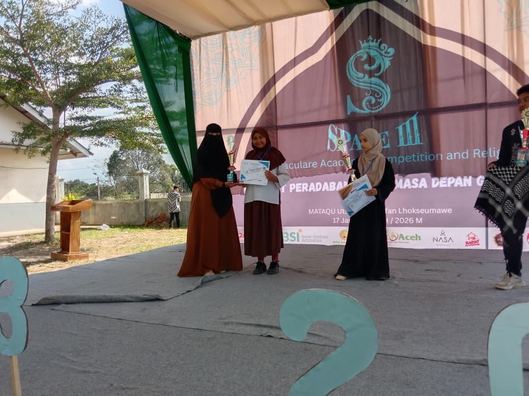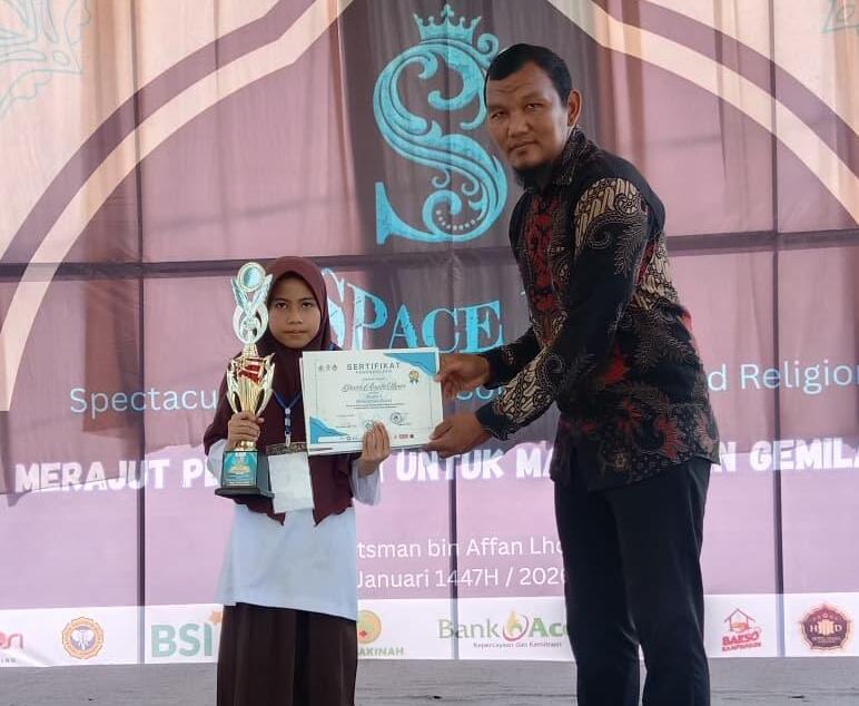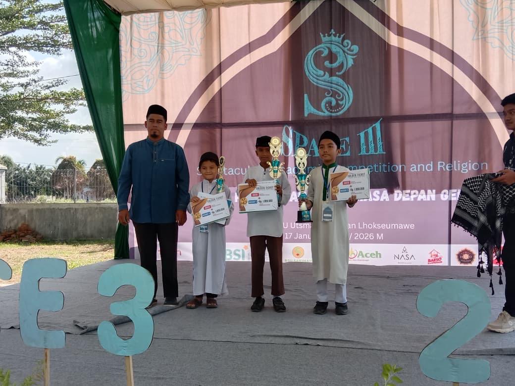Lhokseumawe – Madrasah Ibtidaiyah Negeri 3 Kota Lhokseumawe kembali mengukir prestasi luar biasa pada Festival Spectaculare Academic Competition and Religion (SPACE) III yang berlangsung di Dayah Mataqu Utsman bin Affan Lhokseumawe pada hari Sabtu, (18/01/2026).